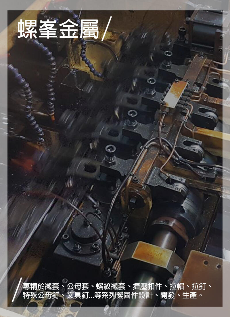 螺峯深知「精準與速度」是生產線最注重的要求,更是製造優良合理價位產品的必備條件。因此我們和美廠採用最先進精密的螺絲冷鍛成型機及多沖程冷鍛成型機作為自動化生產母機。目前廠內設備有1模2沖6模6沖之高速精密冷鍛成型設備生產線,及精密成型專用機,可生產線徑3mm以上緊固扣件產品,高生產能量的生產線可提供客戶更彈性而多元化的快速開發、生產優點。